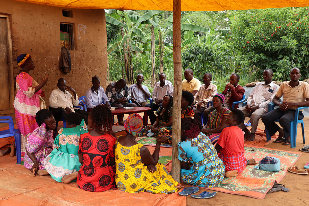 Immaculate (standing) is the chair of her Unbound small group and hosts their meetings monthly at her home. The small groups are guided by Unbound staff but led by elected group members. It’s within these groups in Uganda that the staff introduced families to sustainable farming techniques.