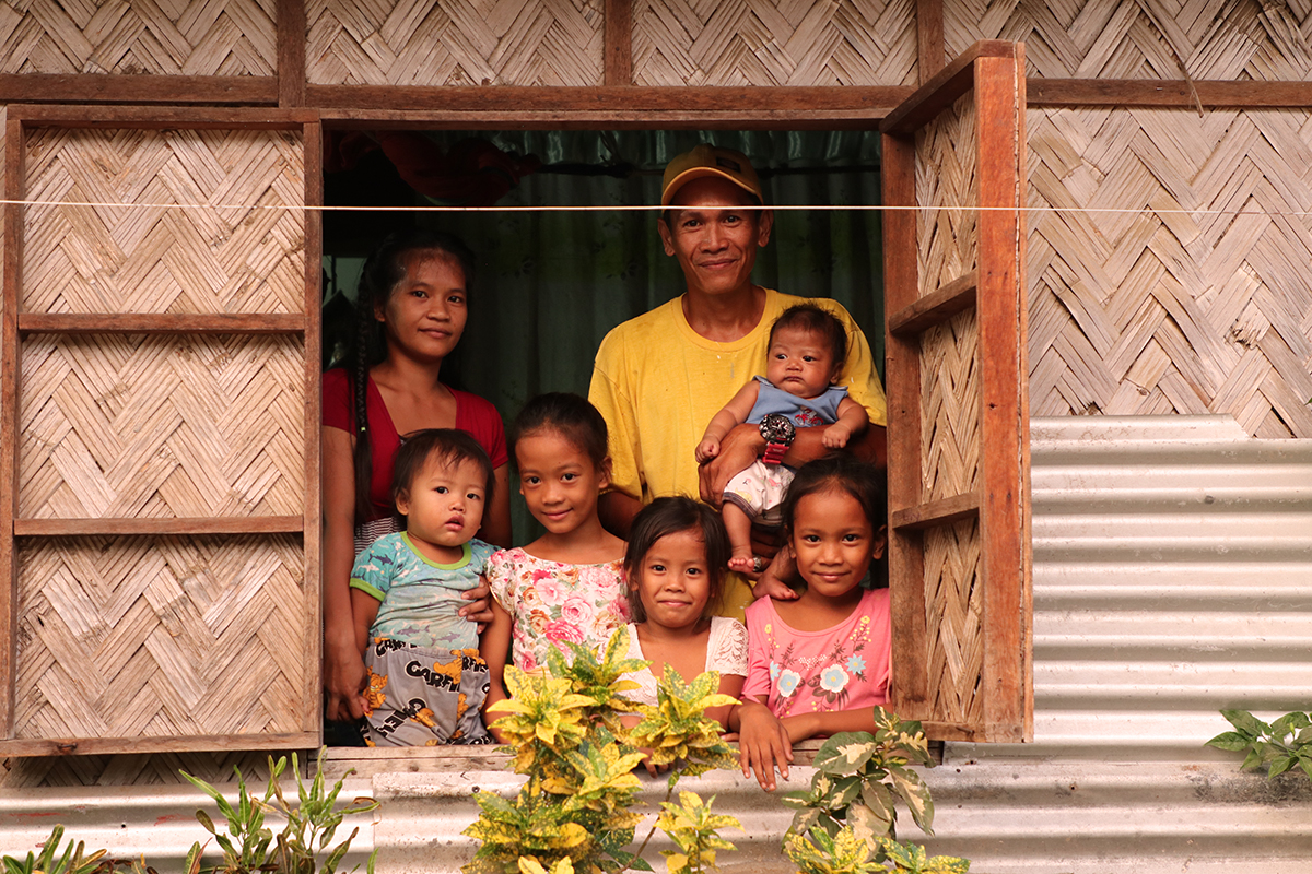 With help from the Critical Needs Fund, the family built their new home on another part of Laguna Lake, away from the neighborhood where the fire occurred. Here, Zel and five of her siblings are pictured on the porch of their new home with their father, Magno.