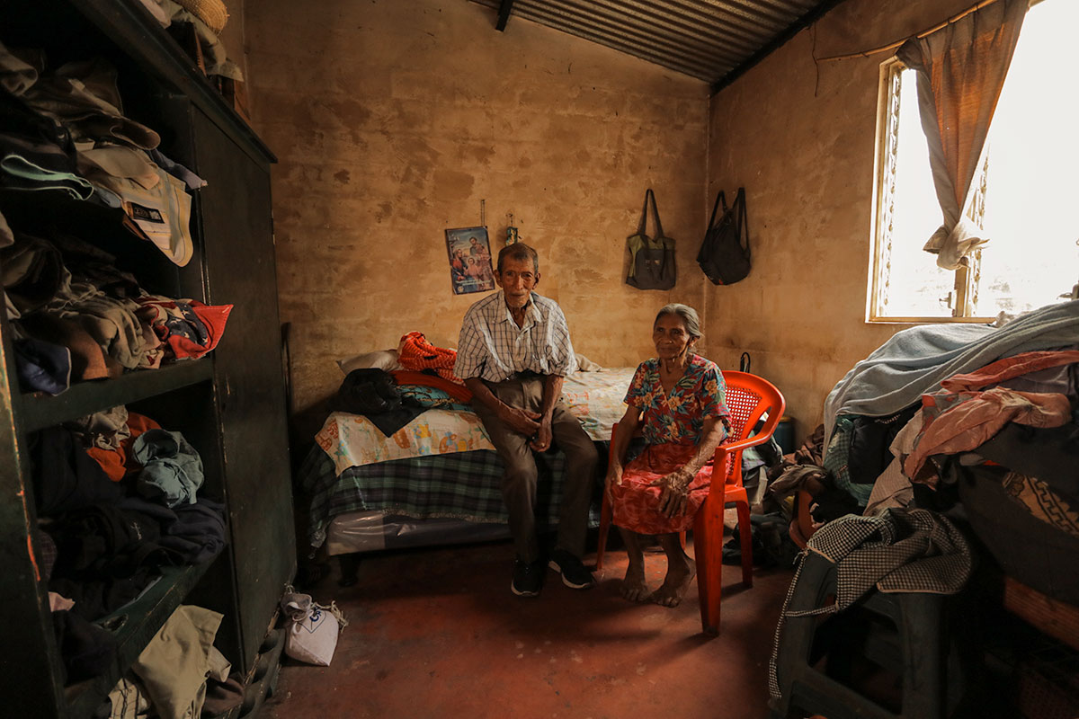 Francisco and María are pictured at home in their bedroom. Francisco walked to work on a farm seven days a week carrying the lunch María lovingly packed for him.