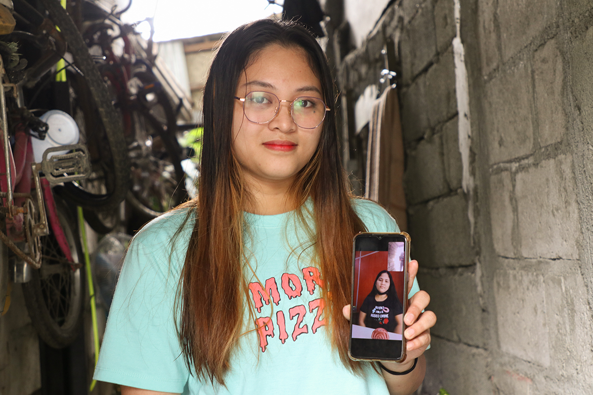 Angela shows a photo of her mother, Susan, on her phone. In her mom’s absence, Angela has been a major support to her father, caring for her younger siblings while also maintaining her university coursework. She is studying hotel and restaurant management and hopes to travel abroad.