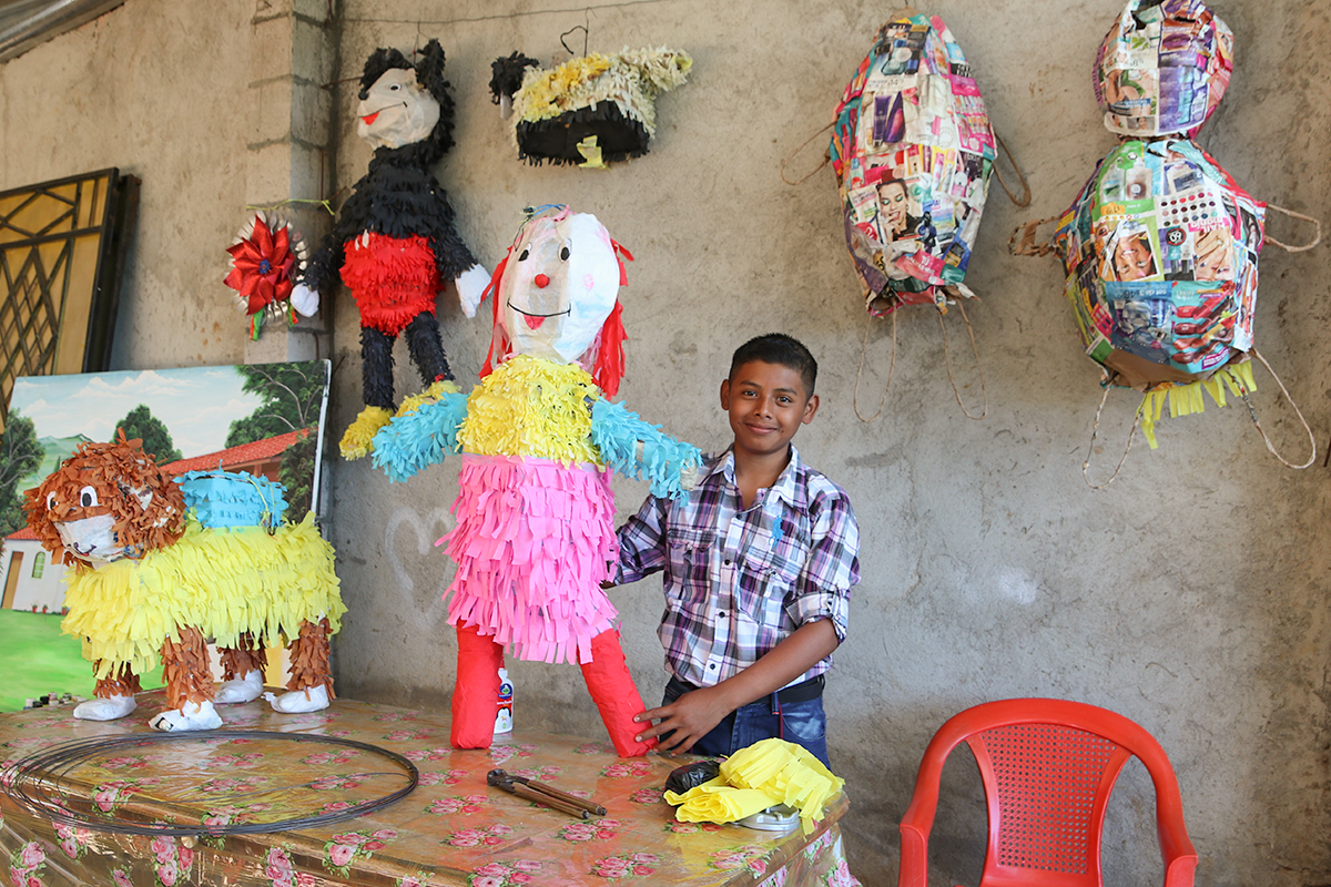 Emiliano is a 15-year-old sponsored youth in El Salvador who enjoys making piñatas, which are popular throughout the region. Bright, festive colors are a hallmark of Latin American countries, and travelers are often greeted with colorful displays and cultural presentations when they visit communities where Unbound works.